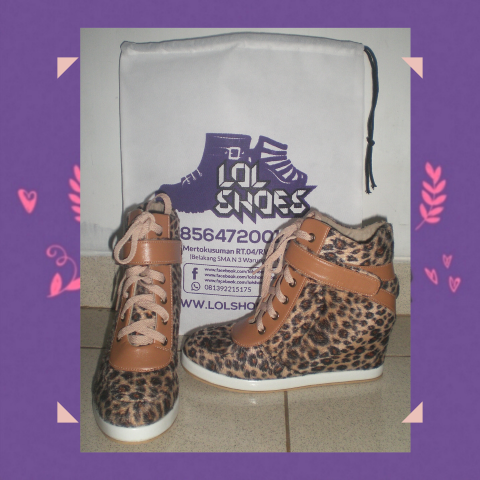 Sneaker Wedges Leopard Perekat Tali 1