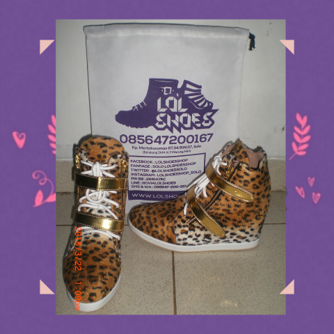 Sneaker Wedges Leopard Perekat Tali 1